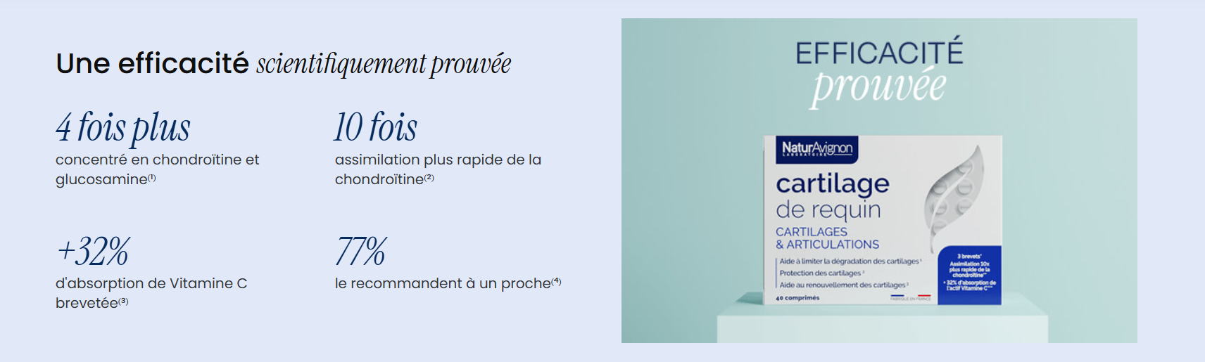 Le complément alimentaire Cartillage de requin de la marque NaturAvignon agit en trois actions: