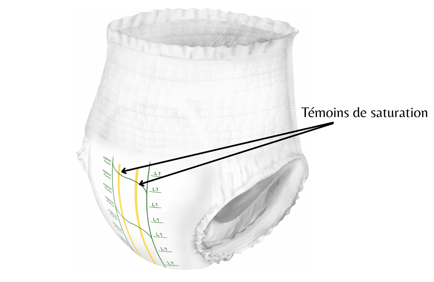 Savoir quand changer sa protection urinaire est essentiel pour éviter les inconforts, les fuites et préserver l’intégrité de la peau. Plusieurs signes et outils peuvent vous aider à déterminer le bon moment pour effectuer un change.En cas de signe de saturation :Sensation d’humidité persistante ou d’inconfort : si la protection semble mouillée ou commence à coller à la peau, il est temps de la changer.Apparition d’odeurs désagréables : une odeur d’ammoniaque ou de moisi peut indiquer que la protection est saturée.Fuite visible sur les vêtements ou la literie : elle signale une saturation ou un mauvais ajustement.Irritation ou rougeurs cutanées : signe que la peau a été en contact trop longtemps avec l’humidité ou l’urine.Se fier au témoin de saturation présent sur certaines protections :De nombreux produits, notamment les protections de qualité médicale, sont équipés d’un indicateur de saturation visuel. Il s’agit d’une ligne colorée qui change de couleur au fur et à mesure que la protection absorbe l’urine. Lorsque la ligne est complètement transformée, cela signifie que la capacité maximale est atteinte, et qu’un changement est nécessaire.