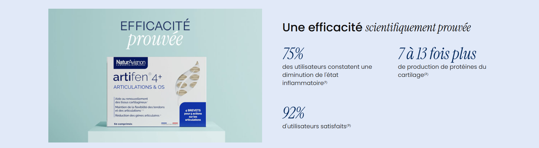 Le complément alimentaire Artifen 4+ a été spécialement formulé pour améliorer le confort articulaire.