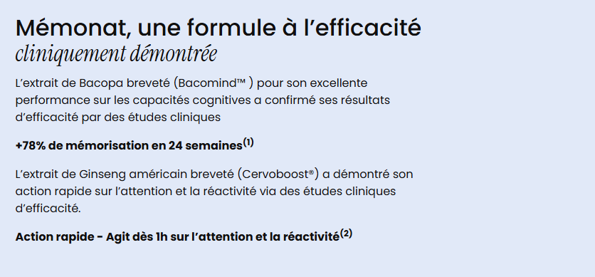 Ce complément alimentaire Mémonat agit en 3 actions: