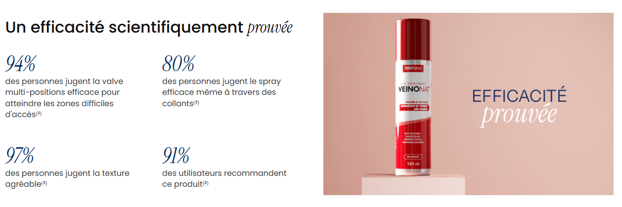 Le spray Veinonat allie fraîcheur et légèreté pour un effet froid immédiat bénéfique pour des jambes délassées et moins fatiguées.