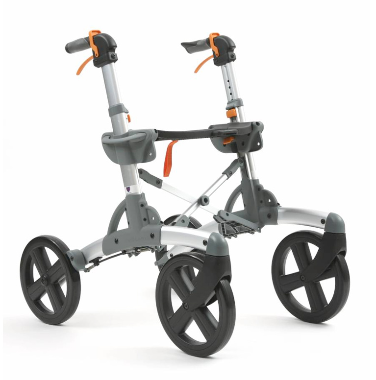 Le rollator Volaris Patrol XL est équipé de grandes roues (26cm) afin de faciliter les déplacements sur surface accidenté. Grâce au système " comfort frame " les 4 roues restent toujours au contact du sol.