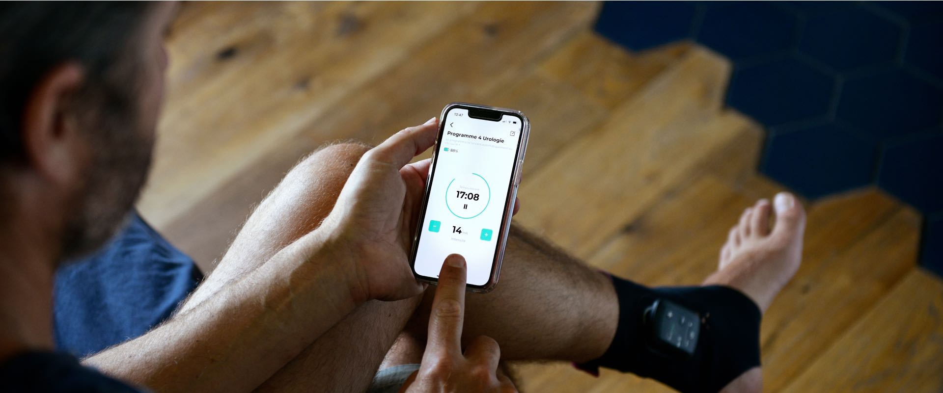 Application mobile intuitive : votre smartphone devient une télécommande de pilotage – sélectionnez en toute simplicité votre programme et ajustez l’intensité de la stimulation en toute simplicité.