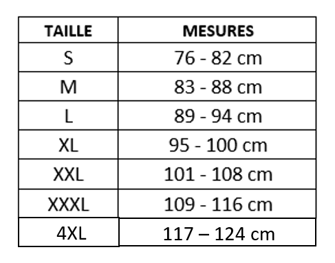 SÉLECTION DE LA TAILLE : avant d'acheter, mesurez votre tour de taille à l'endroit où se trouve normalement la ceinture de votre sous-vêtement.